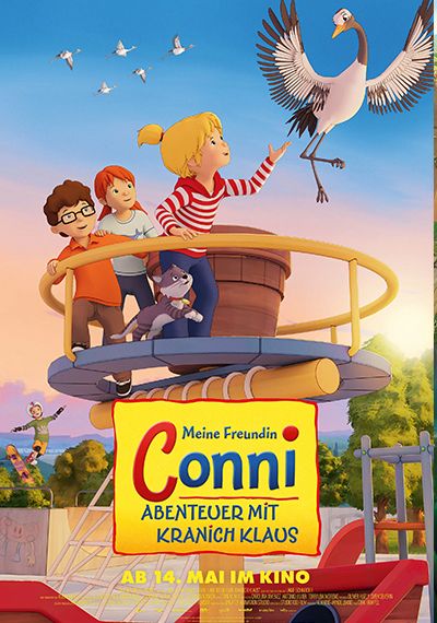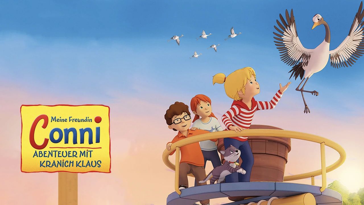Im Haus der Klawitters herrscht Vorfreude: Connis Eltern brechen mit ihrem kleinen Bruder zu einem Familienbesuch auf, doch Conni bleibt daheim – sie will unbedingt Semires Geburtstagsparty feiern. Zum Glück ist sie nicht allein: Opa Willi kümmert sich um die Kinder, und ihre Freunde Anna und Simon dürfen bei ihr übernachten. Doch die gemütlichen Pläne werden jäh unterbrochen, als ein verletzter Kranich bei ihnen landet. Mit viel Fürsorge nehmen Conni und Kater Mau den Vogel – den sie liebevoll Klaus nennen – auf.